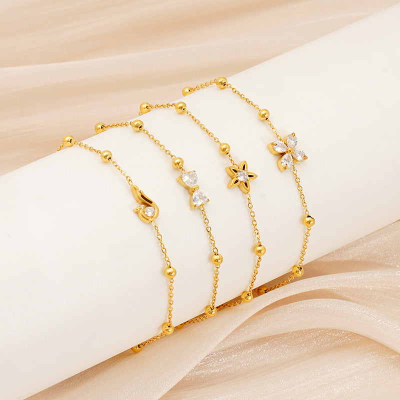 Product Details: Material: Titanium Steel + Zirconia Weight: Approx. 10g Product Type: Charm Bracelet Style: Minimalist / Modern / Commuter Key Features: Premium titanium steel for durability and shine Subtle zirconia charm adds a refined sparkle Lightweight and comfortable for daily wear Tarnish-resistant and..
