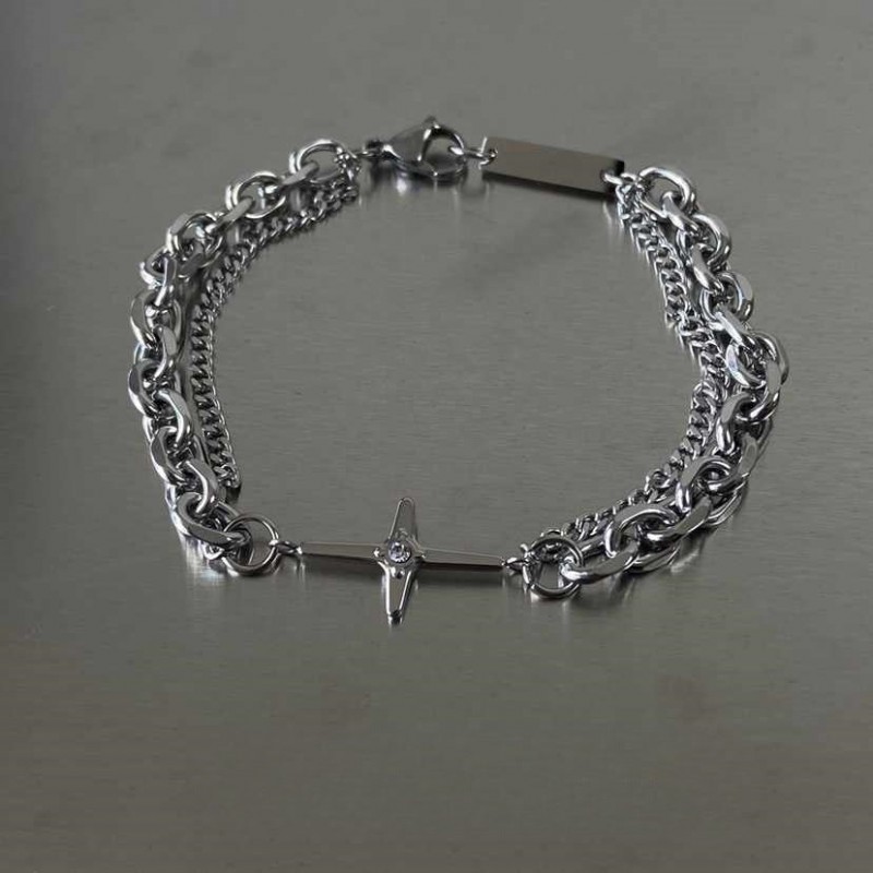Product Details: Material: Alloy with Rhinestone/Diamond-style Detailing Weight: Approx. 12g Product Type: Bracelet Style: Hip-Hop / Streetwear / INS Fashion / Trendy Key Features: Double-layered design for a layered, stylish look Encrusted cross charm for added shine and attitude Lightweight and comfortable for da..